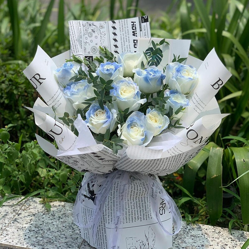 【深海画蓝】11朵碎冰蓝玫瑰,搭配尤加利叶装饰。(珍贵稀少花材,请提前预订或咨询花艺师)