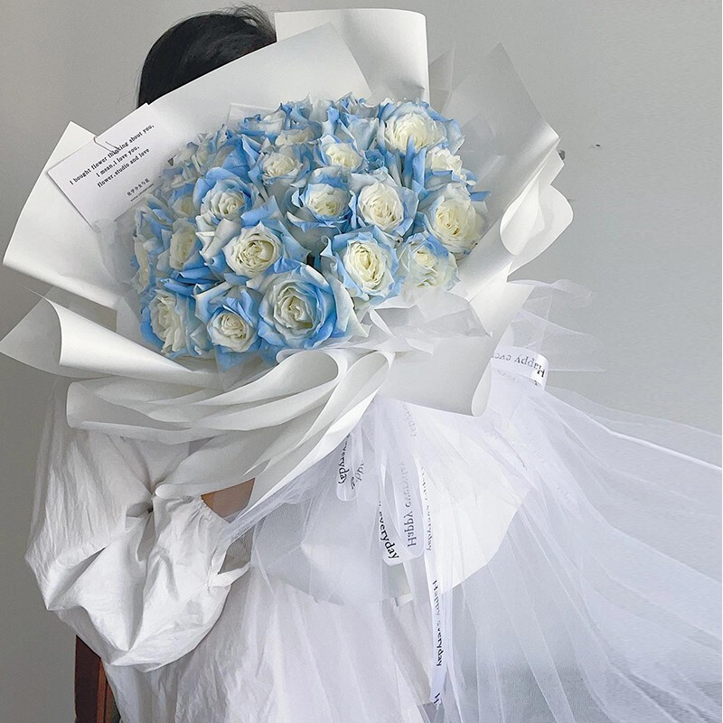 【蓝天白云】19枝碎冰蓝玫瑰,搭配蓝色满天星(珍贵稀少花材,请提前预订或咨询花艺师)