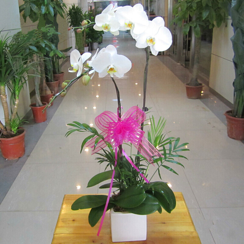 包 装:2株水晶白色蝴蝶兰,搭配精美花盆。