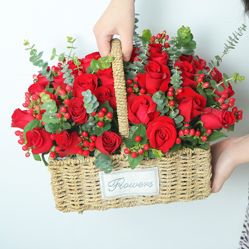 包装: 精美手提花篮(花篮和配饰等具体以当地实物为准)
